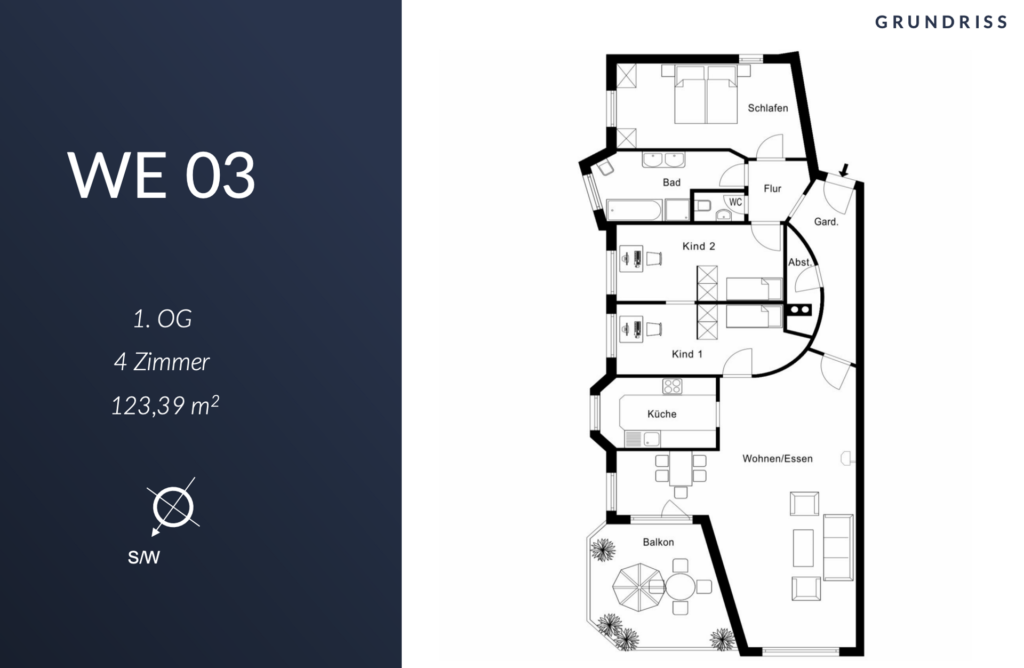 Drei weitere Zimmer – alle mit hochwertigem Echtholzparkett ausgestattet – bieten vielseitige Nutzungsmöglichkeiten, sei es als Schlafzimmer, Arbeitszimmer oder Gästezimmer. Das Badezimmer überzeugt mit Fenster, Dusche und Badewanne. Zusätzlich steht ein separates Gäste-WC zur Verfügung.
